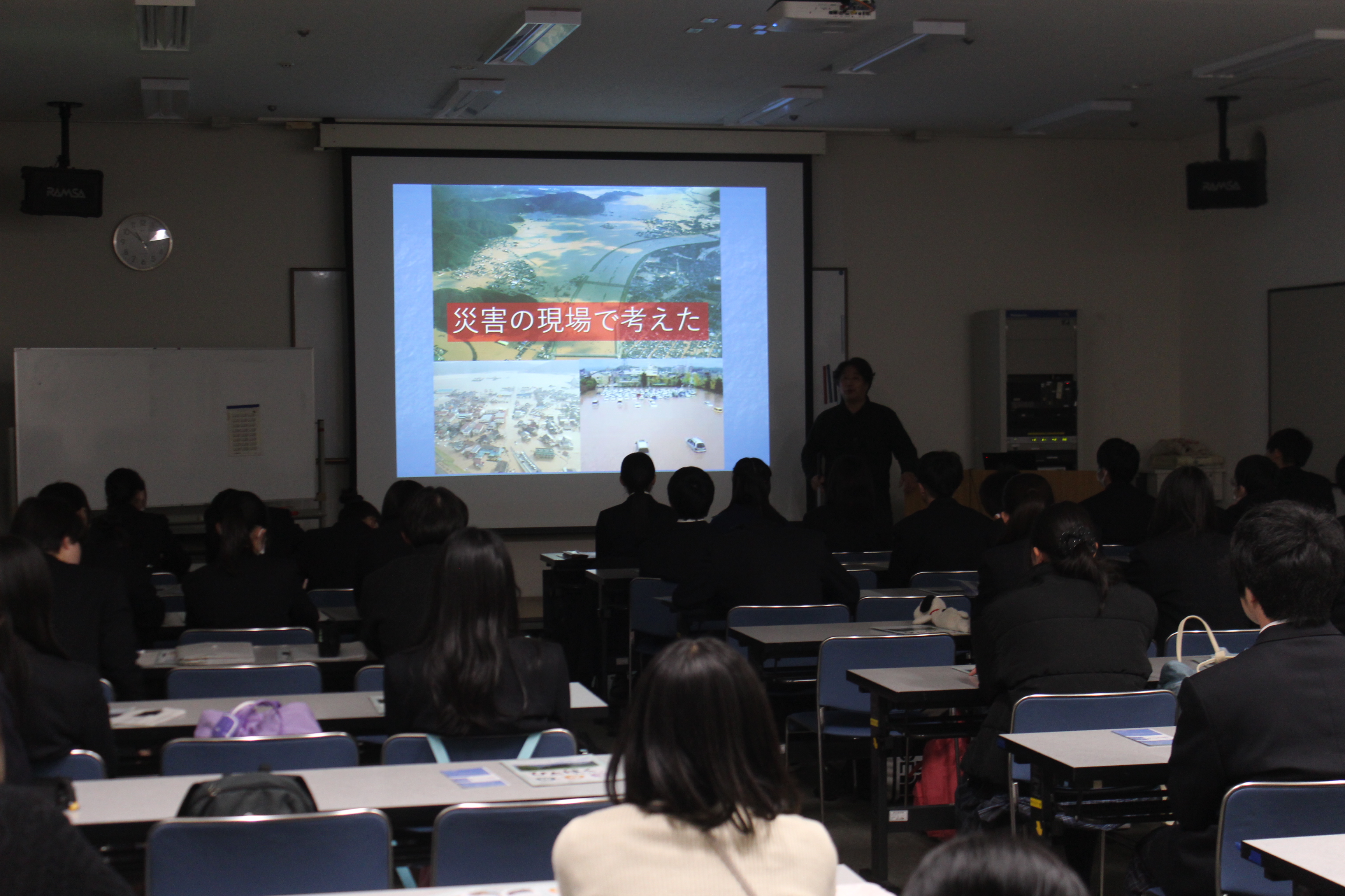 現在取り組まれている最新の研究内容もふくめて、映像等を活用しながらわかりやすく説明がありました。![]()