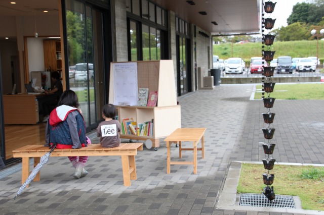 ▲絵本などが積まれた屋台みたいなもの