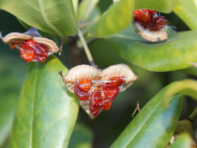 ▲トベラの果実が裂けて