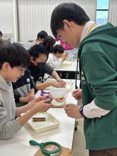 今日は、はかせと学ぼう!スペシャル『石みがき道場!小さな化石を観察しよう』を行いました。