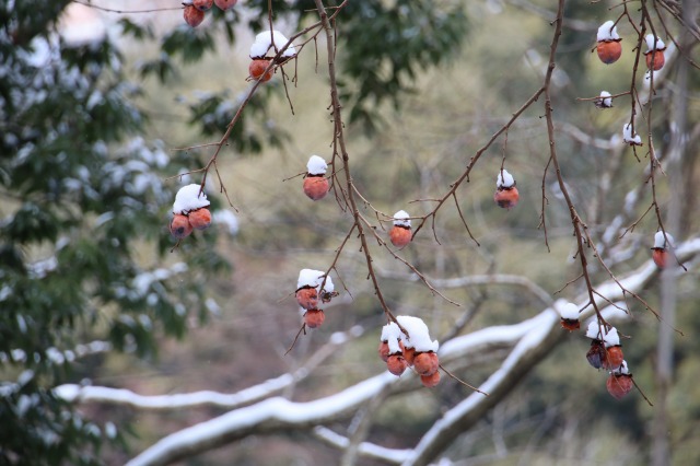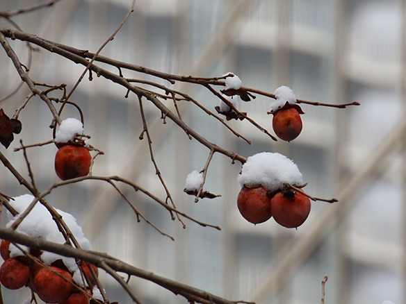 ▲カキノキの果実の雪ぼうし