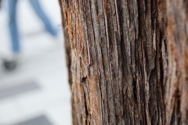 樹皮の表面が剝がれているところを