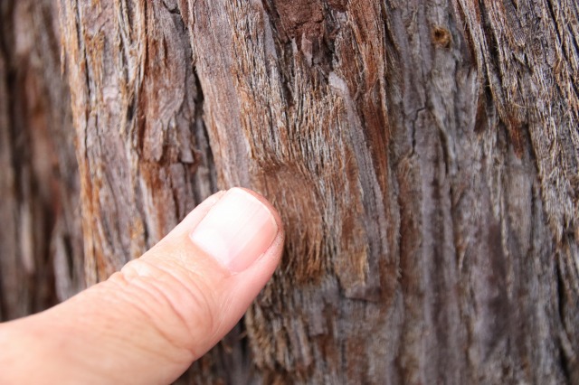 ▲セコイアの樹皮を指で
