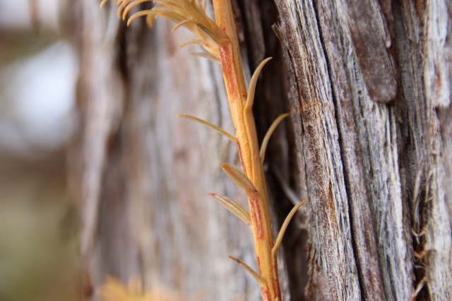 枝に らせん状 に 葉が付いている