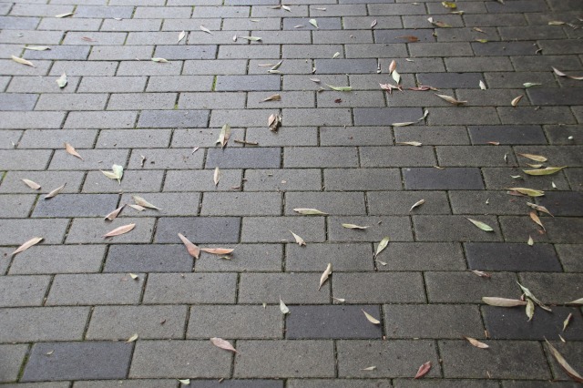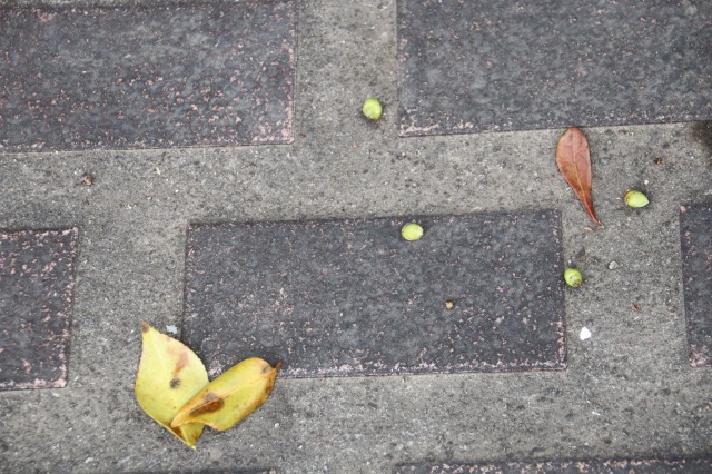▲緑道に落ちていたヤマモモの葉など