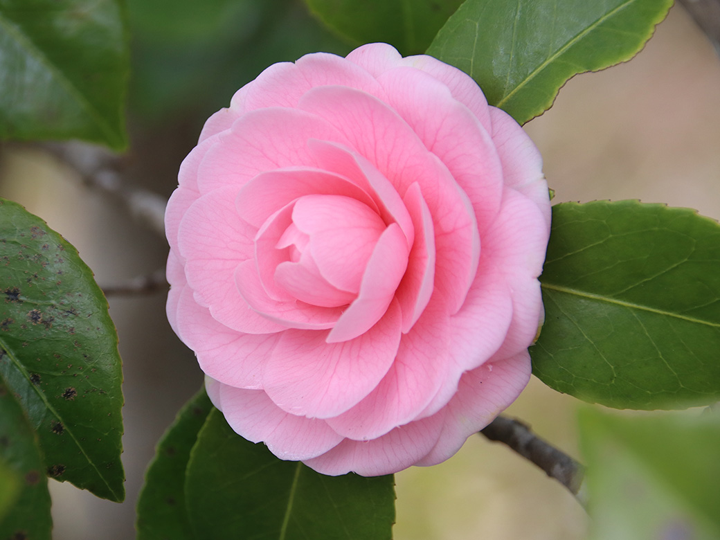 千重咲き品種のオトメツバキ