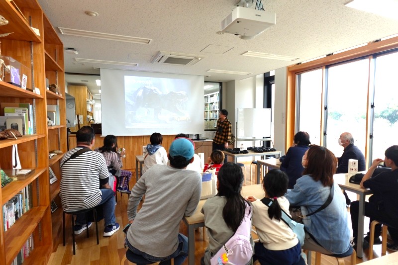 「鳥=恐竜」とは?まずは室内で田中研究員からお話を聞きます。