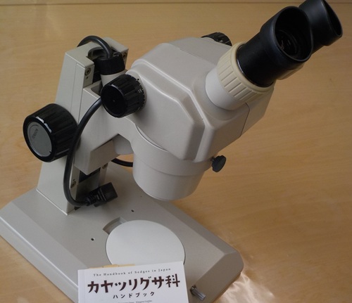 カヤツリグサ科植物の標本を顕微鏡などを使って観察します。 標本(約100種)、図鑑、実体双顔顕微鏡は博物館で準備します。