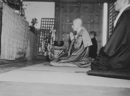 浦野邦市さん_御本尊観音様に読経中の管長様