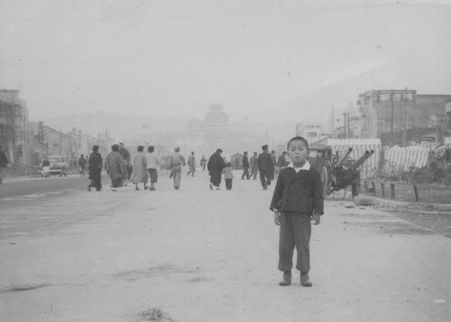 昭和29年12月1日姫路50米道路三陽デパート前で雅夫六才
