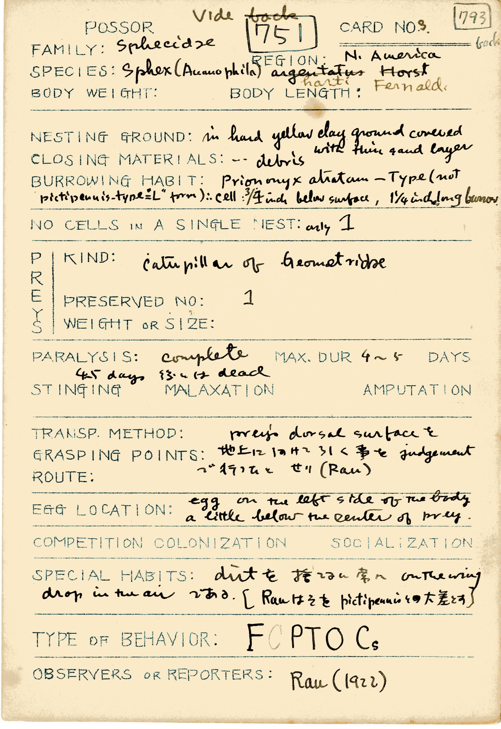 CA-3 SphecinaeCA-3-99 Sphex(Ammophila)harti FernaldiCA-3-100 Sphex (Ammophila)abbreviata Fabr