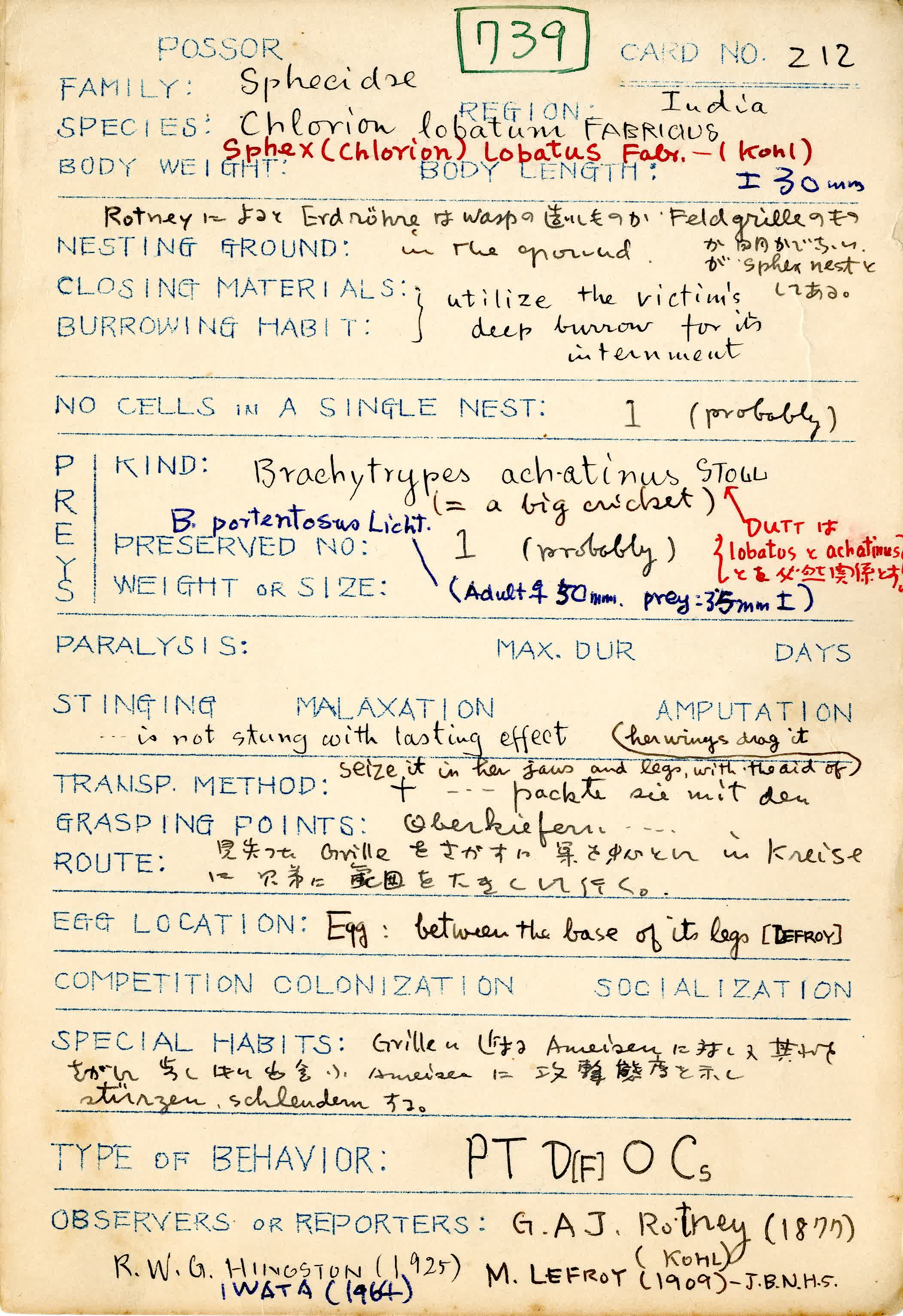 岩田久二雄フィールドノート