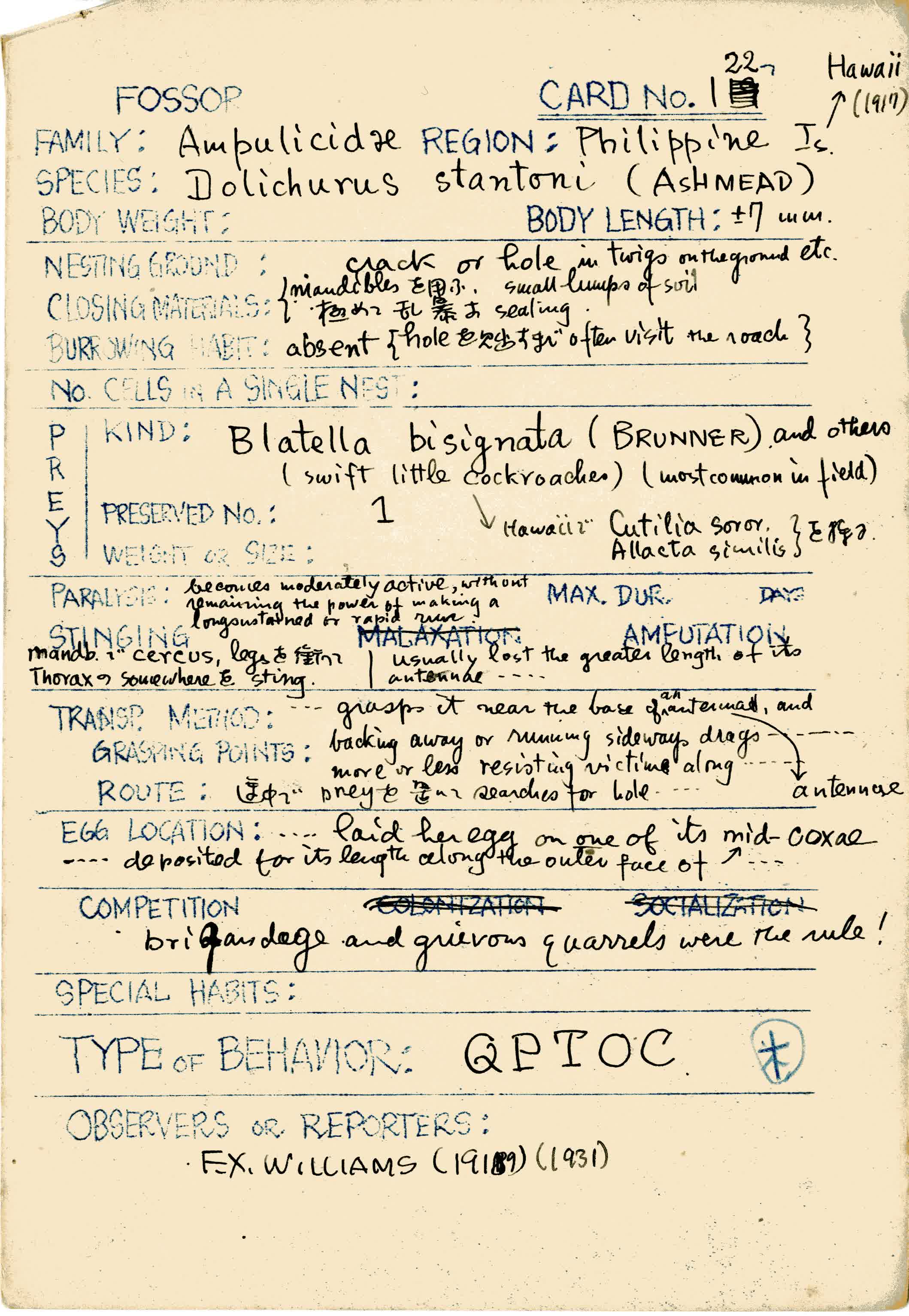 岩田久二雄フィールドノート