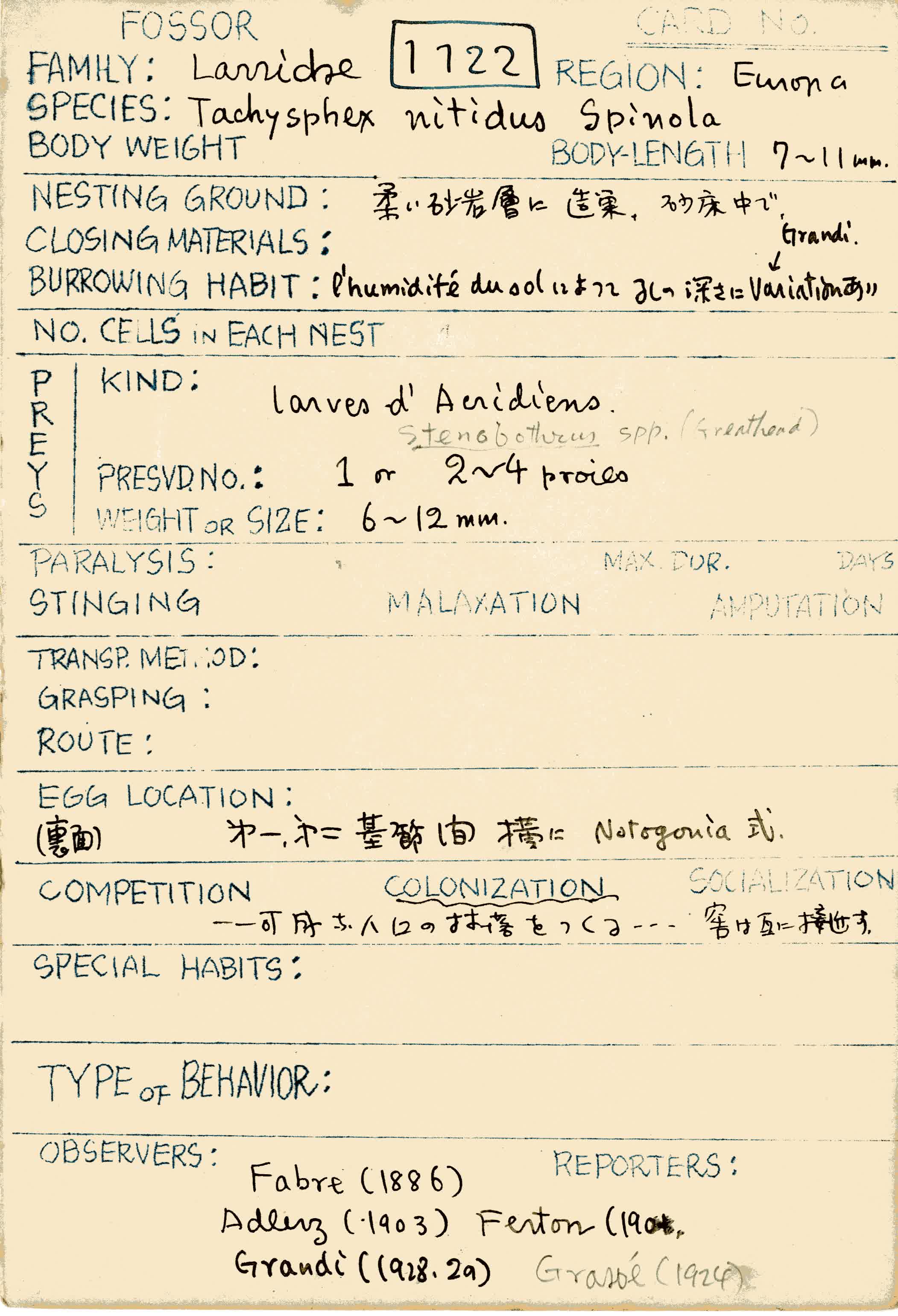 岩田久二雄フィールドノート