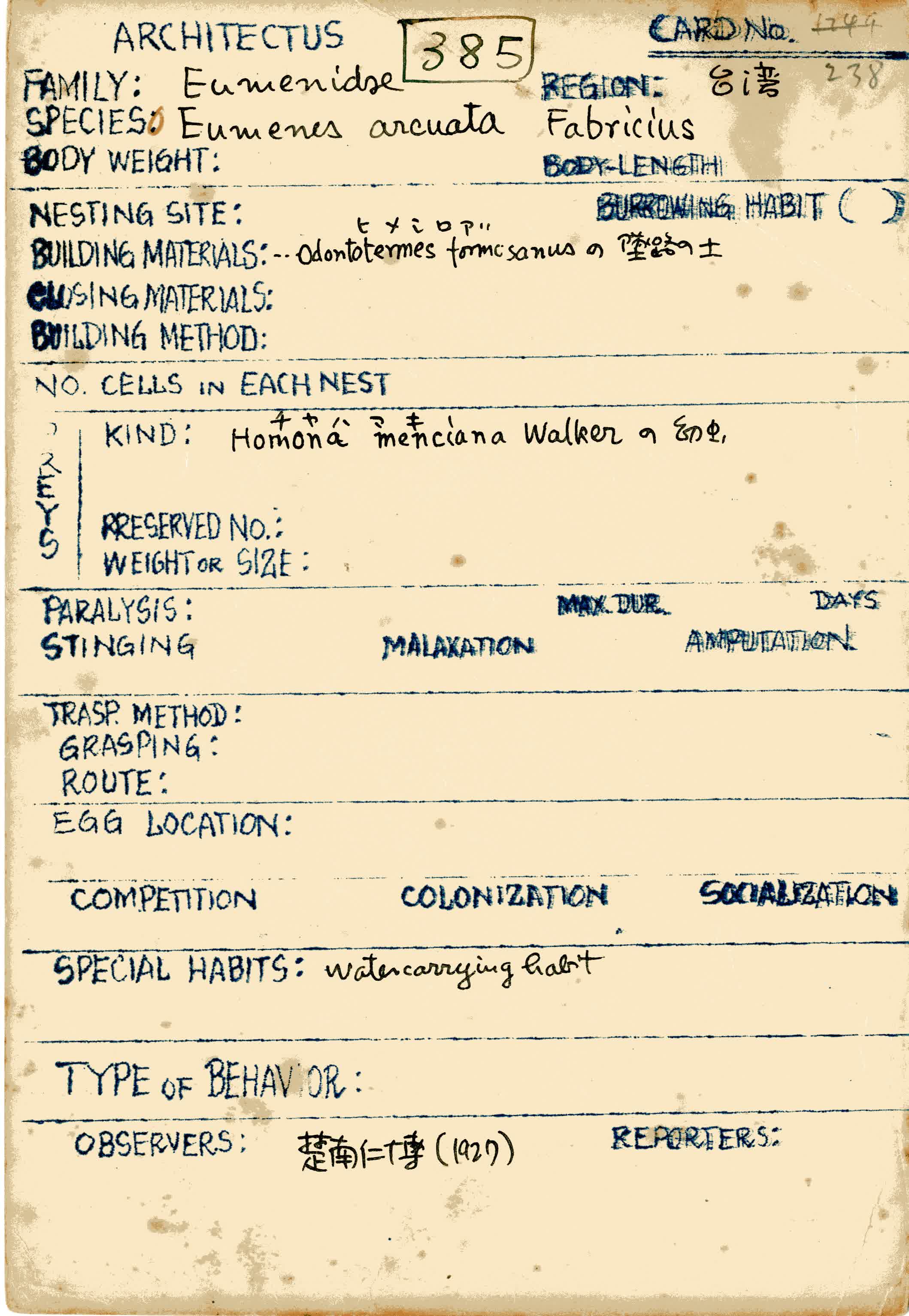 岩田久二雄フィールドノート