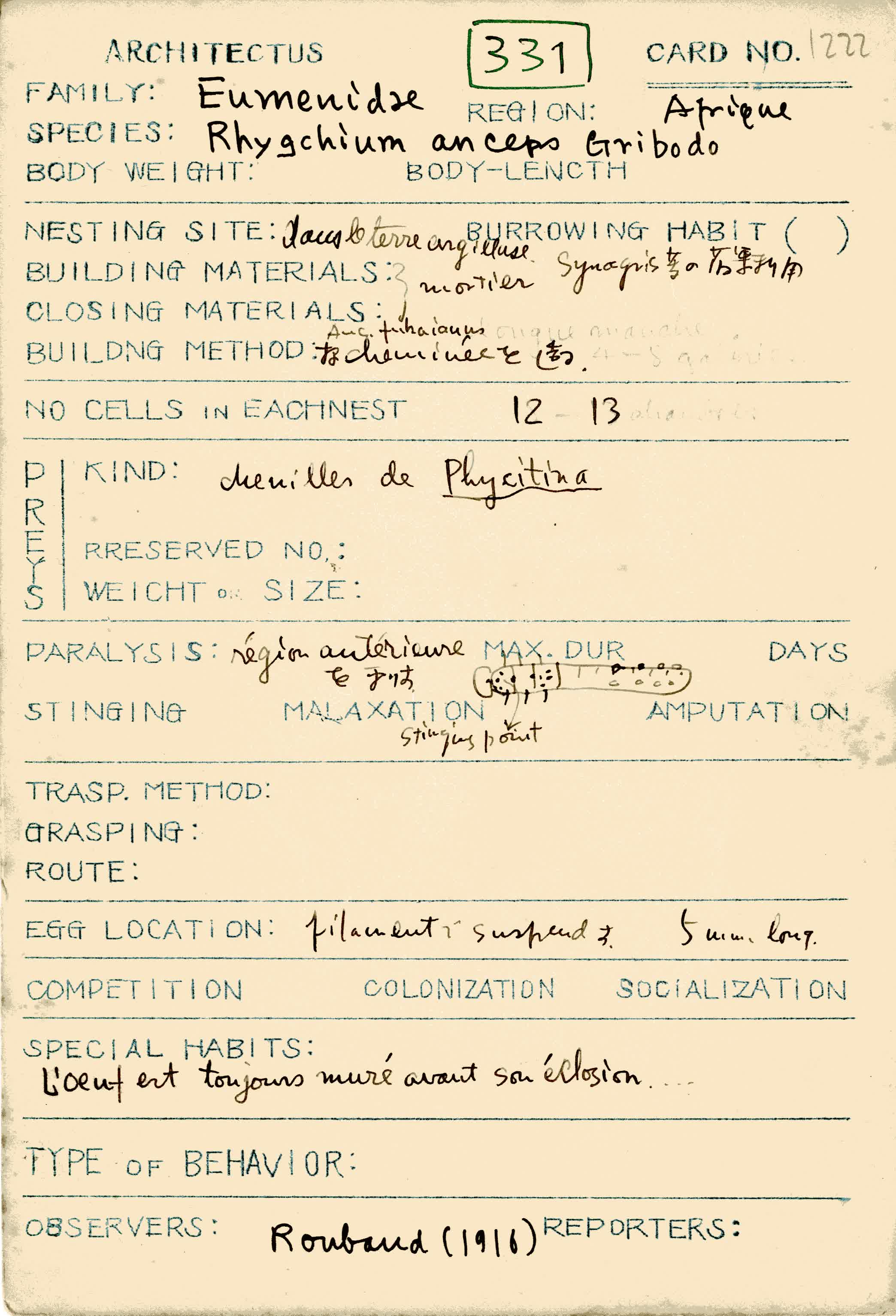岩田久二雄フィールドノート