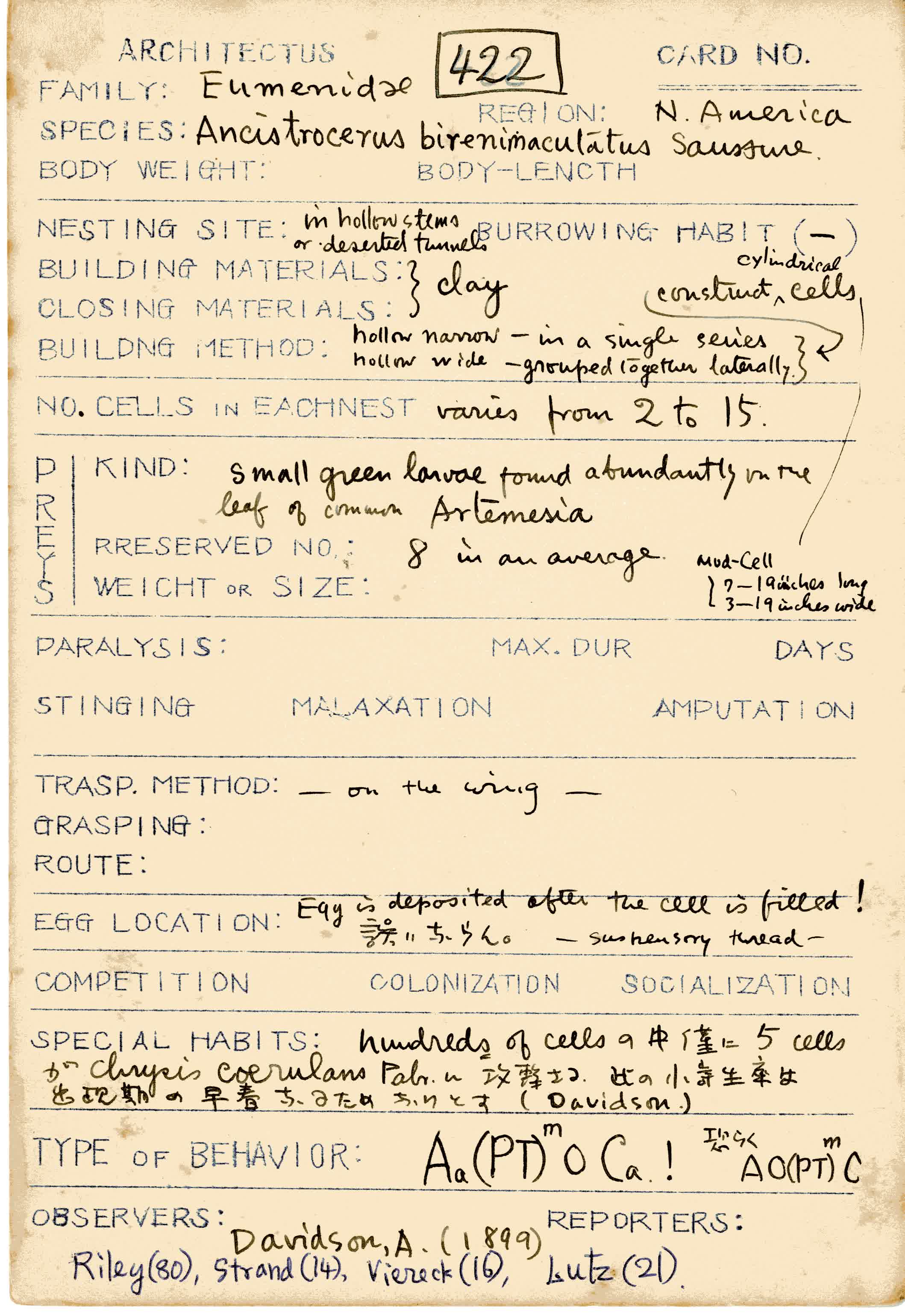 岩田久二雄フィールドノート