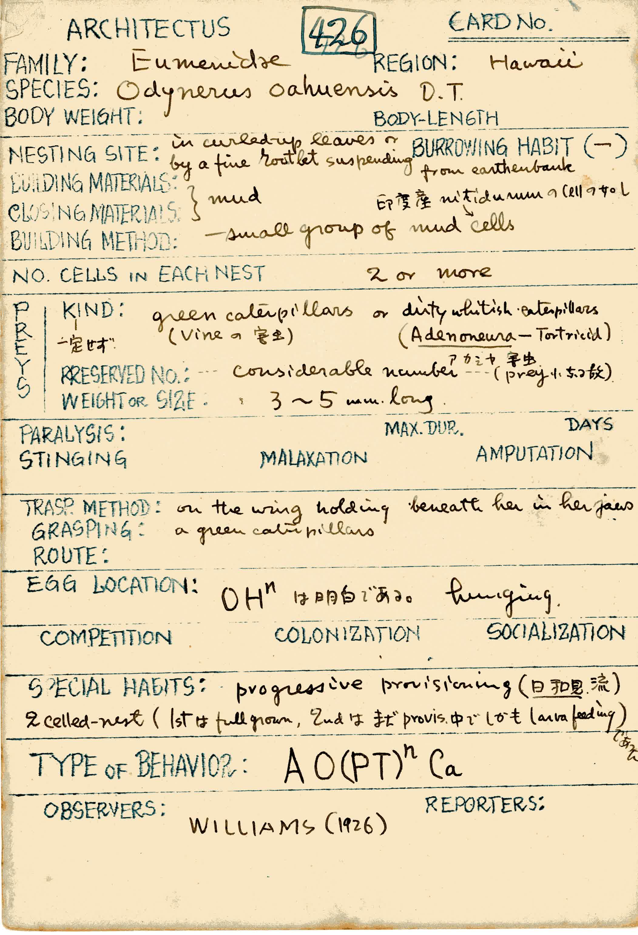 岩田久二雄フィールドノート