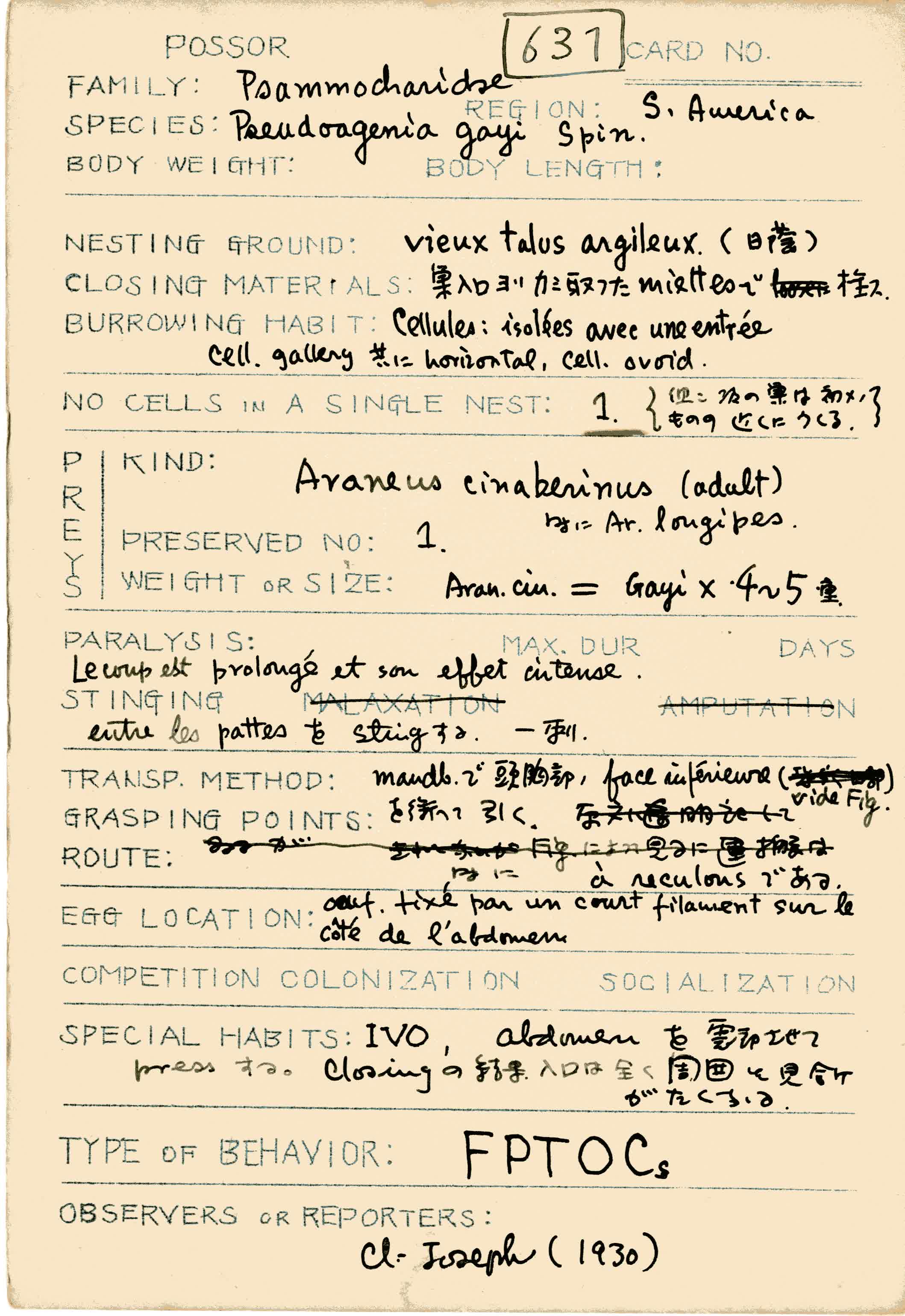 岩田久二雄フィールドノート