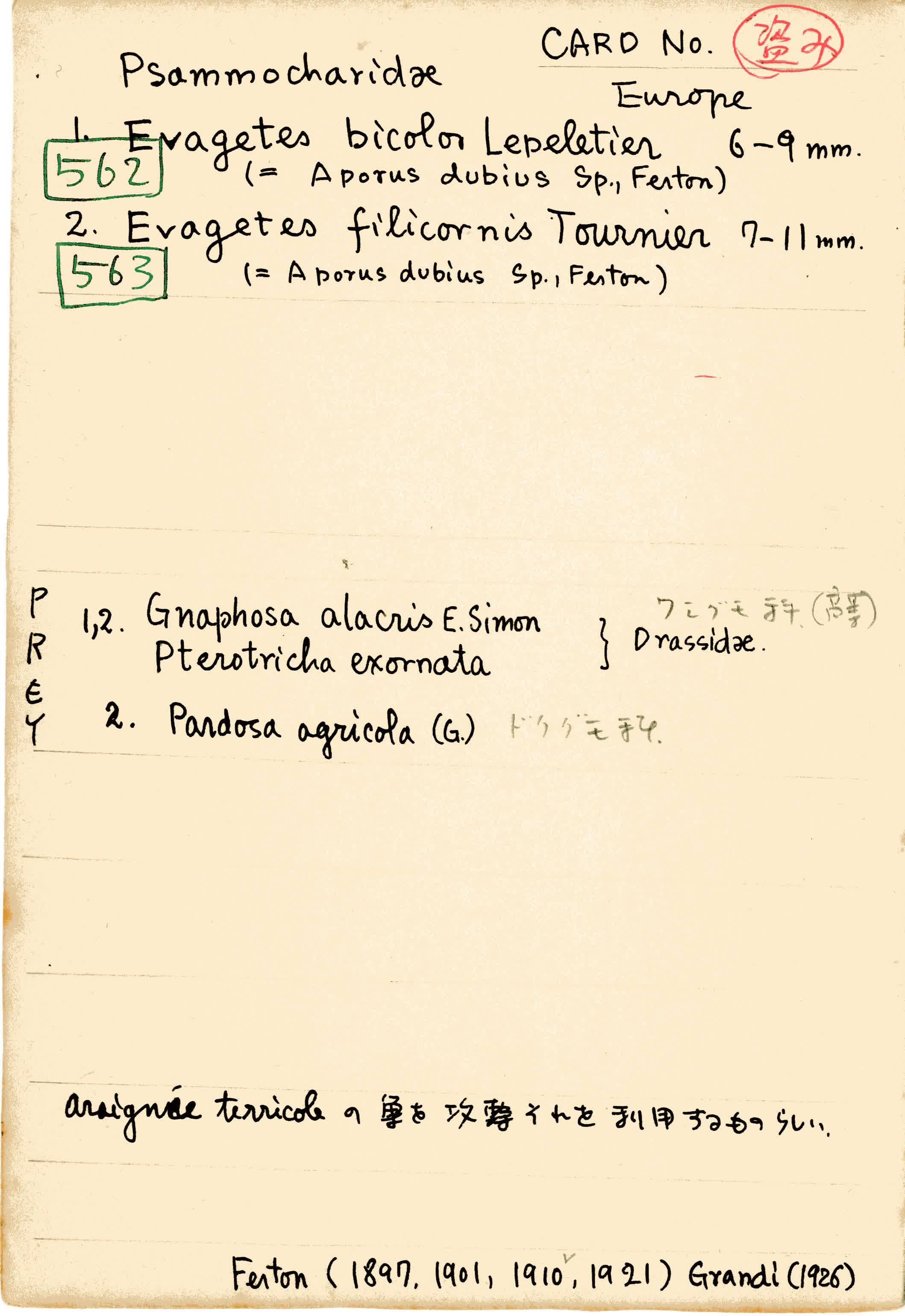 CA-14 Psammocharidae CA-14-165Evagetes bicolor Lepeletier /Evagetes filicornis Tournier